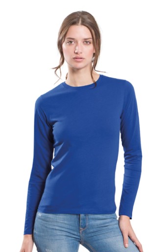 - Klasyczny T-shirt damski z długim rękawem bez ściągaczy.