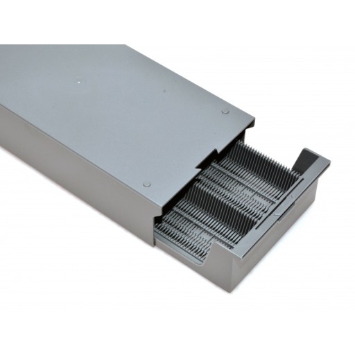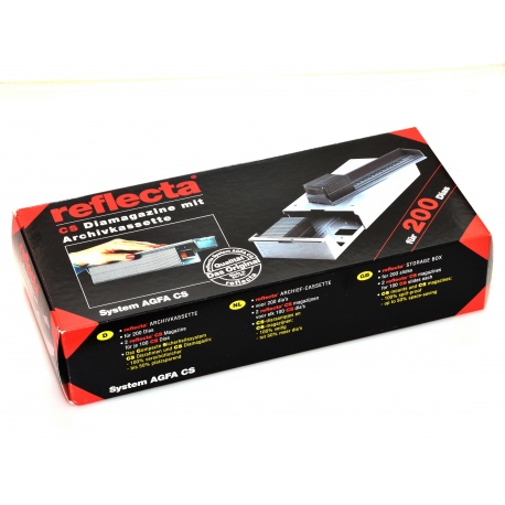 Podajniki oryginalne CS do 100 sztuk ramek CS/CS2 w opakowaniu, które zawiera 2 sztuki w pudełku archiwizacyjnym. Ten typ stosu jest przeznaczony tylko dla ramek CS/CS2 i projektorów przeznaczonych dla nich. W magazynie CS nie ma wypadania ramek nawet w pozycji odwróconej.