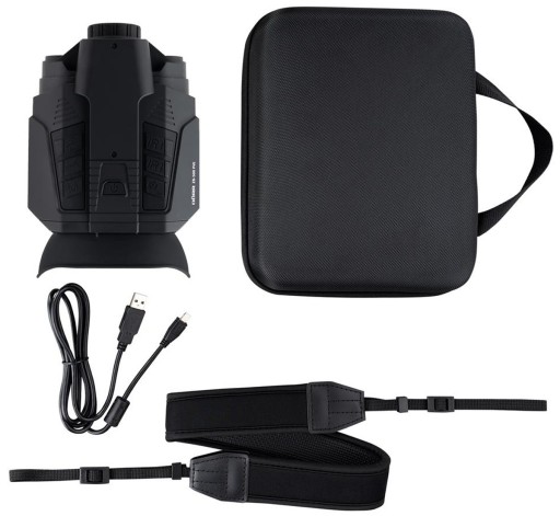 Cyfrowa lornetka noktowizyjna z dalmierzem z dużym 3" 16:9 kolorowym LCD 640x360 Px, powiększenie 6x (10,5°), przednia soczewka 38mm, 3x digital Zoom, oglądanie do 500m dzień/200m noc i dalmierz, 2xIR 1W LED, Li-Ion/USB, nagrywanie 2Mpx Full HD Foto/Video na Micro SDXC do 516 GB. Ręczne ustawianie ostrości obiektywu, wygodne obuoczne oglądanie wyświetlacza z gumą chroniącą przed światłem otoczenia, kolorowy obraz w dzień (f/5.5) i czarno-biały w nocy (f/1.3), nagrywanie dźwięku, możliwość odtwarzania nagrania m.in. kasowanie, możliwość rejestracji czasu i odległości, 2x Li-Ion 18650 2300mAh z ładowaniem USB, do 10 godzin pracy w dzień i 6 godzin w nocy w trybie IR, gwint statywowy, wymiary 21x14x7,5cm, waga 604g, kolor czarny . Dostarczany z neoprenowym elastycznym paskiem na szyję, kablem USB i futerałem do transportu.