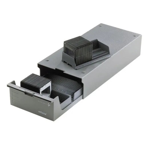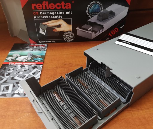 Pojemniczki oryginalne CS na 40szt diaramek CS/CS2 w opakowaniu , które zawiera 4szt w pudełku archiwizacyjnym. Ten typ stosu jest przeznaczony tylko dla ramek CS/CS2 i projektorów przeznaczonych dla nich. W magazynie CS nie ma wypadania ramek nawet w pozycji odwróconej.