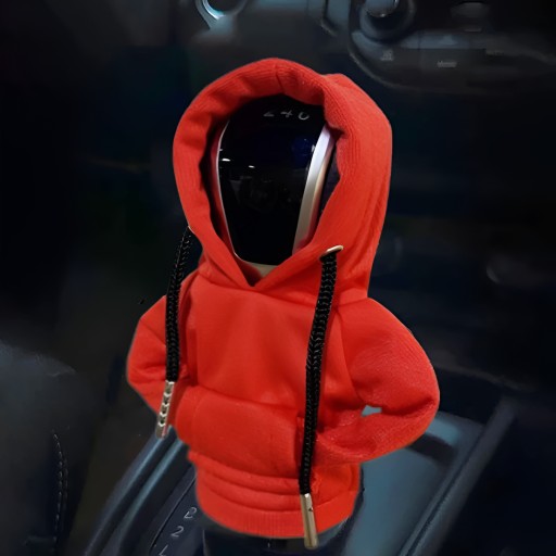 Czerwona bluza z kapturem do montażu na gałce zmiany biegów.