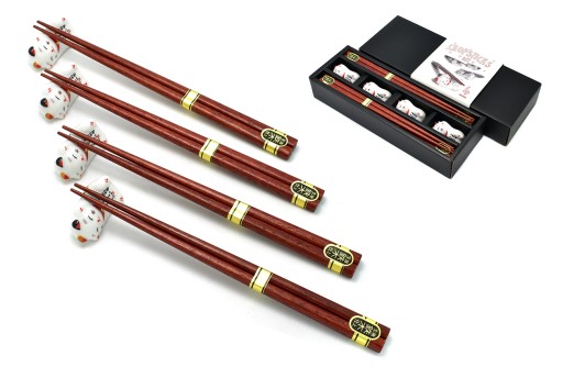 Набор палочек для еды, 4 шт + подставки, Кошки Счастья.