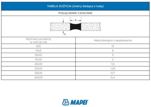 - Mapesil AC zależy od rozmiarów szczeliny.