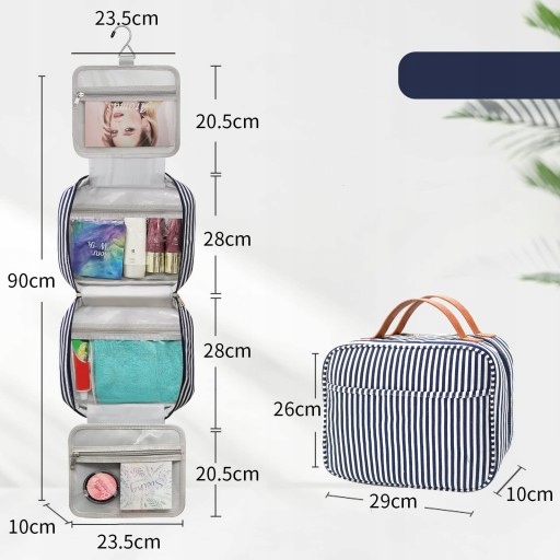 - Kosmetyczka wisząca, miękkie wyściełane paski, bezpieczny podwójny zamek.