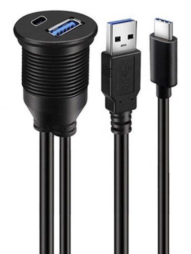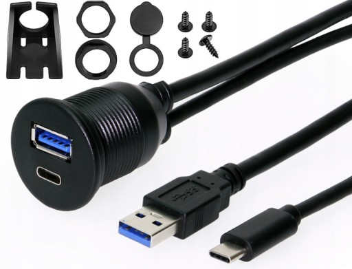 Przedłużacz samochodowy 2 m podwójny x 2 USB 3.0 USB C gniazdo panel gwint porządny wodoodporny