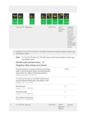 KOMPLETNY RAPORT PDF z numerami wymienionych części.