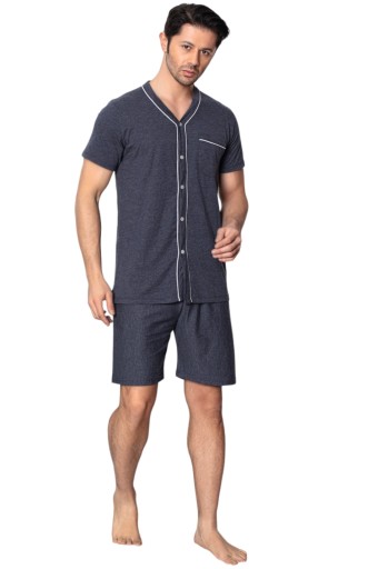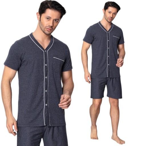 BAWEŁNIANA MĘSKA PIŻAMA Z KRÓTKIM RĘKAWEM I KRÓTKIMI SPODNIAMI CAŁA ROZPINANA
