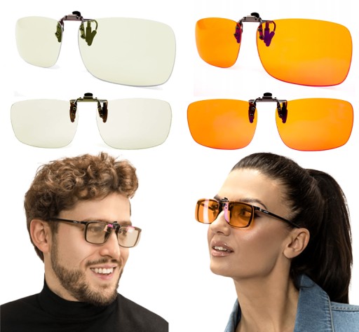 ✅ Markowe nakładki na okulary NoBlue Orange z 100% filtrem światła niebieskiego - wieczorne