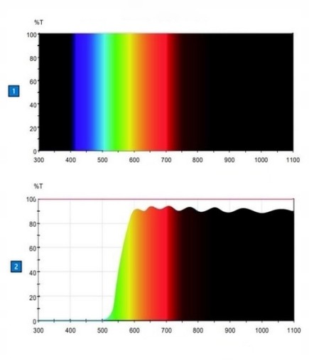 Wykres 2️⃣ pokazuje jak bardzo nasze okulary wieczorne redukują szkodliwe światło UV i światło niebieskie. Aż 100%.