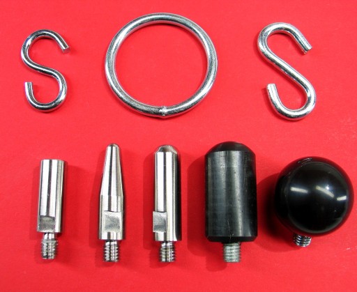 - 2 końcówki z tworzywa technicznego fi 20 i 32 mm ( walec i kula )