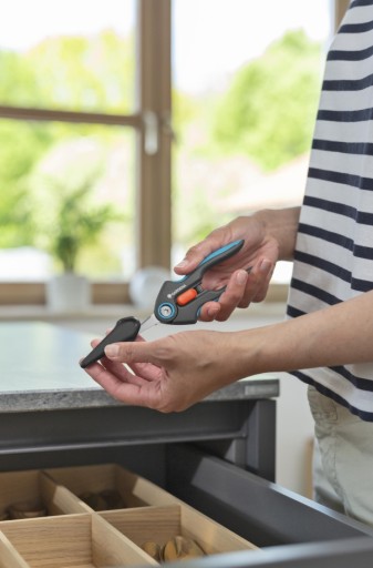 Dzięki ergonomicznym rękojeściom ErgoTec nożyce FreshCut wygodnie leżą w dłoni. Miękkie, antypoślizgowe elementy zapobiegają wyślizgiwaniu się nożyc.