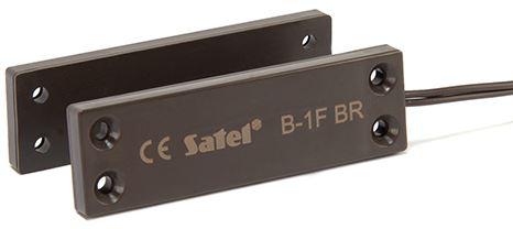 Czujki magnetyczne umożliwiają wykrycie otwarcia drzwi, okien itp. Płaska czujka kontaktronowa B-1F przeznaczona jest do montażu powierzchniowego (przykręcana do podłoża). Czujka dostępna jest w białej (B-1F) i brązowej (B-1F BR) wersji kolorystycznej.
