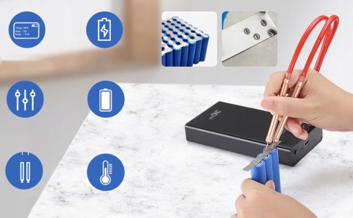 - Ta mini zgrzewarka punktowa ma wbudowany akumulator 7500 mAh, który można w pełni naładować w ciągu 3 godzin.