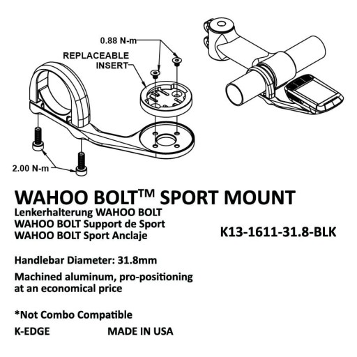 K-Edge uchwyt do Wahoo Bolt Sport Mount 31.8mm czarny
