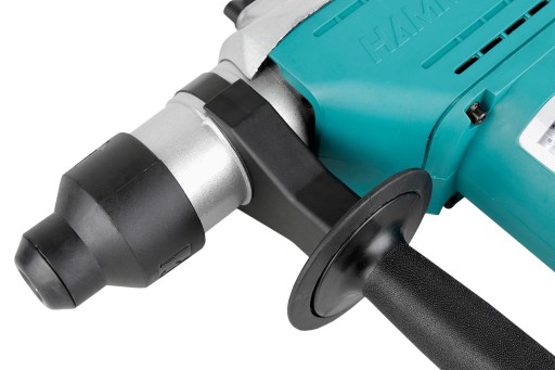 W młocie zastosowano dodatkowy uchwyt z możliwością regulacji w zakresie 360°, dzięki czemu praca jest wygodna i precyzyjna. W dodatkowym uchwycie został przewidziano miejsce na dołączony do zestawu ogranicznik głębokości, dzięki któremu mamy większą kontrolę nad urządzeniem podczas pracy. Całość dostarczana jest w wygodnej walizce z tworzywa sztucznego.