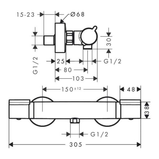EAN: 4011097729756 Marka: Hansgrohe Seria: Versostat Rodzaj baterii: ścienna Gwarancja: 5 lat Nr referencyjny: 15368000