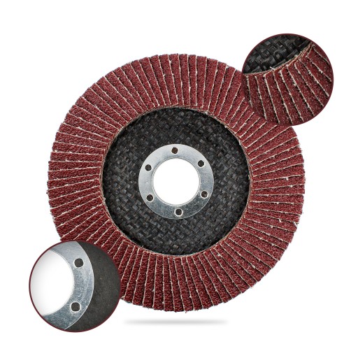 Element jest zbudowany z talerza oraz listków ściernych ułożonych w wachlarz i przyklejonych do podstawy. Listki ułożone są warstwowo, dzięki czemu jakość szlifowania pozostaje równomierna i nie spada w miarę pracy z narzędziem. Tarcza jest wyjątkowo lekka, dzięki czemu nie wymaga stosowania dużej siły.