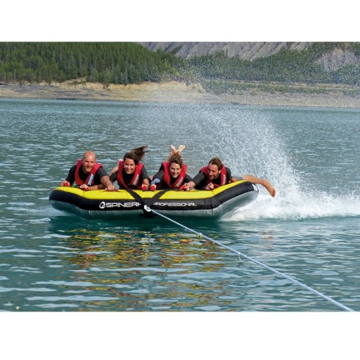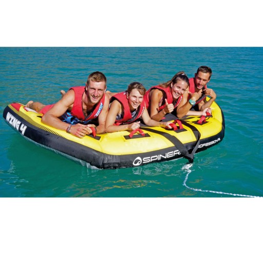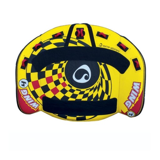 Dzięki „skrzydłom” Wing zwyczajnie unosi się z wody i lubi pozostawać kilka metrów w powietrzu. Elegancki kształt tej tuby ma bardzo niski opór, a zatem optymalne właściwości ślizgowe. Wskakuj i leć To pływadło zostało stworzone z myślą o najwyższych wymaganiach i trwałości w zastosowaniach komercyjnych. Wytrzymały materiał, plandekowy spód, całe Wing 4 jest całkowicie zamknięte w nylonowej osłonie. Ucho dyszla jest szyte wielopunktowo a miękkie nylonowe uchwyty z podkładkami neoprenowymi pod spodem zapewniają doskonałą jakość tej atrakcji do holowania na wodzie.