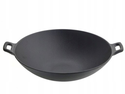 Żeliwna patelnia WOK 30,5 cm ciężka i stylowa.