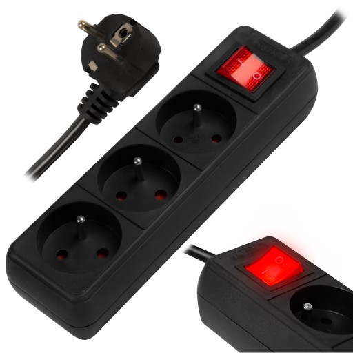 Przedłużacz sieciowy BLOW w kolorze czarnym z trzema gniazdami przeznaczony do użytku domowego. Przedłużacz pozwala podłączyć urządzenia, które są oddalone od gniazda elektrycznego. Produkt z jednej strony posiada 3 gniazda obrócone pod kątem oraz włącznik, a z drugiej pojedynczy kątowy wtyk sieciowy.