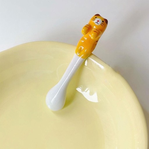 Zwierzęta kreskówkowe Wiszące łyżki Ceramiczna łyżka dla kota do restauracji Wesele Żółty i biały