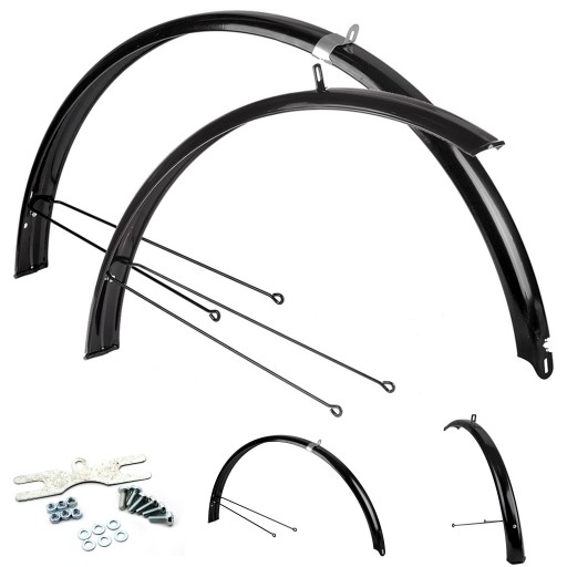 W komplecie 2 wsporniki do błotników, blaszka na tylni błotnik (do montazu przy hamulcy) oraz śrubki do przykręcenia wsporników do błotnika.