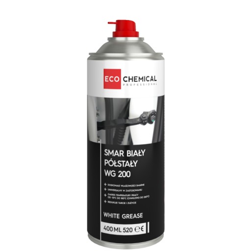 WG 200 White to biały smar półstały z dodatkiem inhibitorów korozji, służący do długotrwałej ochrony powierzchni pracującej w ekstremalnych obciążeniach, narażonych na zużycie spowodowane tarciem. Preparat zapewnia długotrwałe smarowanie wszystkich elementów ruchomych. Redukuje tarcie, skrzypienie i zużycie. Chroni przed korozją.