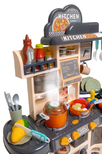 Podczas zabawy kuchnia wydaje dźwięki i wydobywa się para jak podczas gotowania oraz święcą się światełka w palnikach, dzięki czemu gotowanie wydaje się jeszcze bardziej realistyczne.