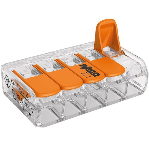 Seria 221 przeznaczona jest do prądu nominalnego 32A oraz napięcia nominalnego 450V i dzięki temu może być stosowana w sieciach 230V / 400V. Przezroczysta obudowa zapewnia pełną kontrolę umieszczenia przewodów.