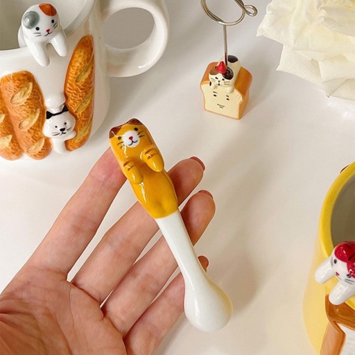 Zwierzęta kreskówkowe Wiszące łyżki Ceramiczna łyżka dla kotów na wesele w restauracji Żółty i brązowy