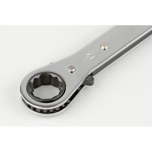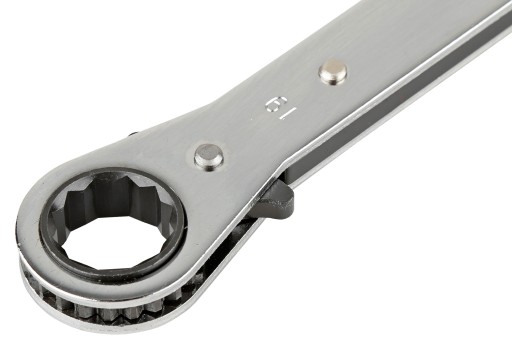 Oczka z grzechotką w kluczach wyposażone zostały w końcówkę Surface Drive, która daje nam możliwość odkręcenia śruby z uszkodzonym łbem (wyrobiony, zaokrąglony). Wszystkie klucze zostały wykonane ze stali chromowo- wanadowej.