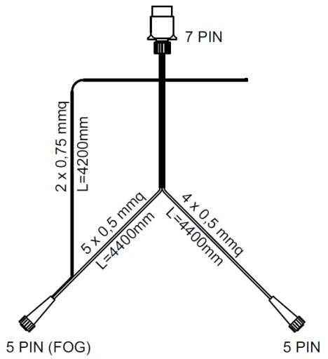 - Wiązka jest wyposażona w 2 konektory bajonet 5 - PIN umożliwiające podłączenie świateł przyczepki samochodowej.