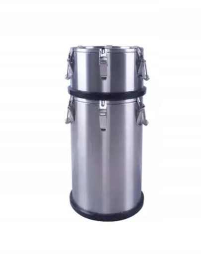 Termos do transportu żywności wykonany z wysokiej jakości stali nierdzewnej i podstawą z tworzywa sztucznego o pojemności 25 l.