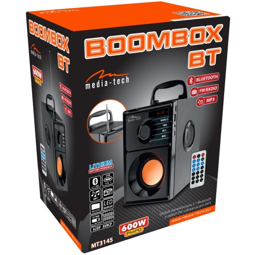 Media-Tech prezentuje kompaktowy głośnik Bluetooth BOOMBOX BT MT3145 z wbudowanym subwooferem oraz dwoma głośnikami średniotonowymi. Całkowita moc zestawu wynosi 15W RMS.