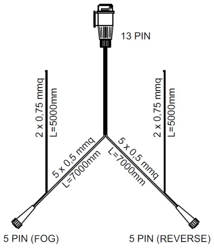 - Wiązka jest wyposażona w 2 konektory bajonet 5 - PIN umożliwiające podłączenie świateł przyczepki samochodowej.
