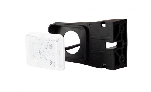 Lampa pozycyjna przednia z wieszakiem, diodowa 12/24 V, wyprodukowana przez firmę Horpol. Biała z odblaskiem, w komplecie zawiera przewód płaski 2x0,75 mm2 o długości 0,45 m.