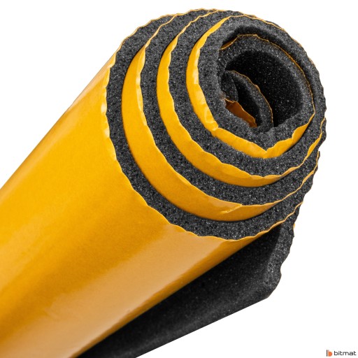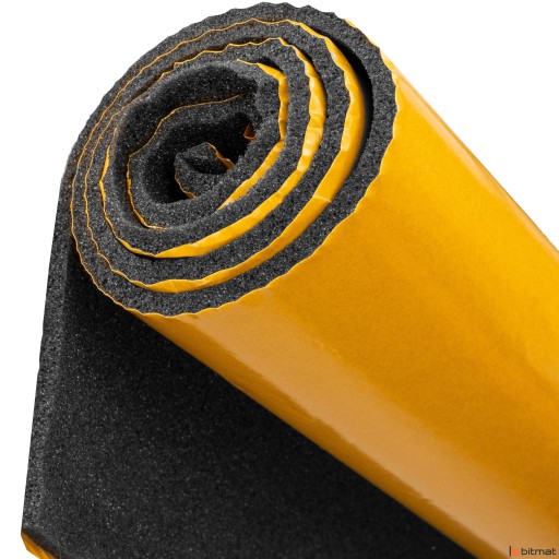 Bitmat M5s posiada klej naniesiony natryskowo, co sprawia, że pianka trzyma całą powierzchnią na przyklejanym elemencie. Daje pewność, że produkt jest porządnie zamontowany na poziomych i pionowych płaszczyznach. Samoprzylepność przyśpiesza czas pracy, nie musimy się brudzić z klejami.