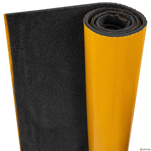 Bitmat M5s posiada klej naniesiony natryskowo, co sprawia, że pianka trzyma całą powierzchnią na przyklejanym elemencie. Daje pewność, że produkt jest porządnie zamontowany na poziomych i pionowych płaszczyznach. Samoprzylepność przyśpiesza czas pracy, nie musimy się brudzić z klejami.