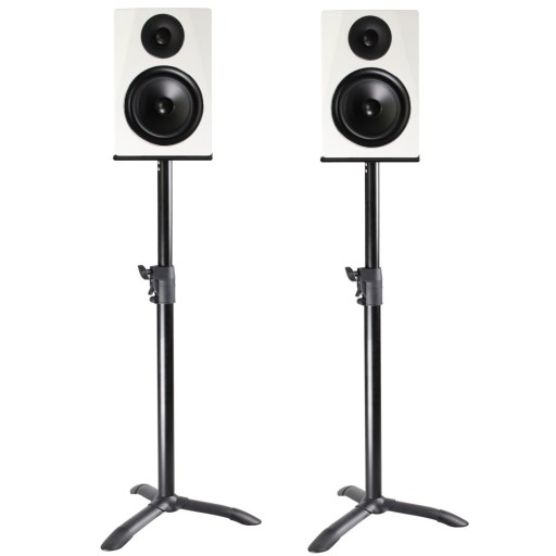 Zestaw dwóch stojaków pod głośniki studyjne od Mozos to gwarancja udanego zakupu. Uniwersalne zastosowanie w zakresie głośników 4-8″. Bardzo stabilna, trójkątna podstawa z możliwością montażu albo plastikowych stopek lub metalowych kolców. W zależności od podłoża, dokonaj wyboru i samodzielnie zamontuj odpowiednie nóżki. Statyw pod kolumny MSS4 to również duża regulacja w zakresie wysokości. Z pewnością znajdziesz odpowiednią wysokość do swojego miejsca pracy lub zabawy. Co więcej w tej wersji statywu zastosowano pół-automatyczny system regulacji. Nie trzeba wkręcać i wykręcać śrub. Wystarczy nacisnąć odpowiedni przycisk, wyregulować wysokość i to tyle. Sprzęgło samoblokujące umożliwia prostą regulację do 110 cm.