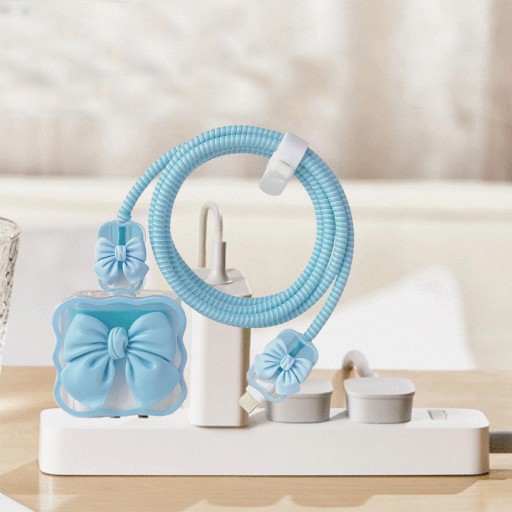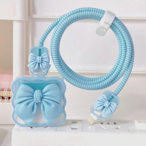 Ładowarki Kabel Osłona ochronna 3D Etui ochronne na telefon komórkowy Bow Knot Blue