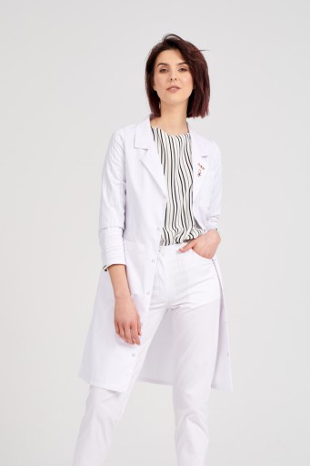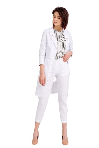 Fartuch Długi Medyczny Maja to klasyczny i nowoczesny strój wykorzystywany w szpitalach, przychodniach, laboratoriach , placówkach medycznych oraz wielu innych miejscach gdzie liczy się styl i ponadczasowość. Taliowany fartuch medyczny to idealna propozycja dla kobiet oczekujących od stroju wygody, dobrej ochrony i przede wszystkim profesjonalnego wyglądu. Fartuch posiada trzy duże niezbędne kieszenie z czego jedna posiada praktyczną