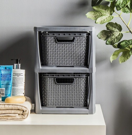 - Dwa wyjmowane kosze w stylu Rattan z wygodnymi uchwytami