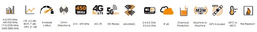 - Niezależna od płaszczyzny uziemienia: MIMO-3 posiada wewnętrzną płaszczyznę uziemienia, dzięki czemu antena nadaje się do zastosowania na wszystkich typach powierzchni