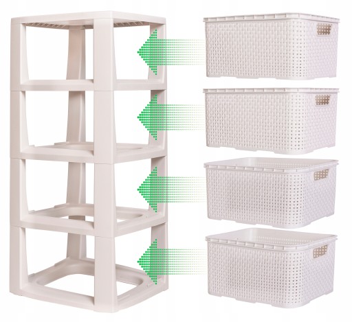 Regał Stojak z 4 koszami rattan Branq - BIEL ANTYCZNA