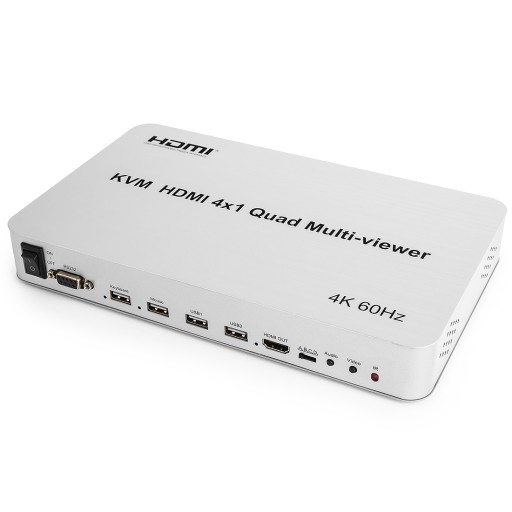 Multi-viewer 4x1 Quad to przełąćznik HDMI o wysokiej wydajność dla czterech źródeł sygnału HDMI.