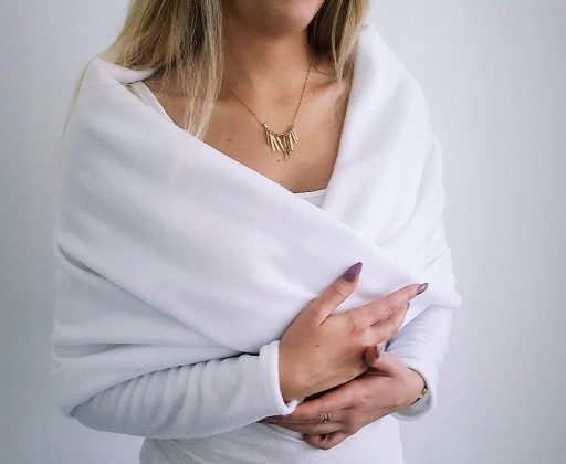 Dzianina polarkowa jest świetnym materiałem, który dopasowuje się do sylwetki, jest elastyczny, nie widać na nim zagnieceń i świetnie komponuje się z większością modeli sukienek ślubnych. Okrycie ślubne można modyfikować i używać zarówno z rękawkami, jak i bez.