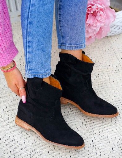 ❤EFEKTOWNE CZARNE BOTKI NA KOTURNIE (ukryty koturn)
