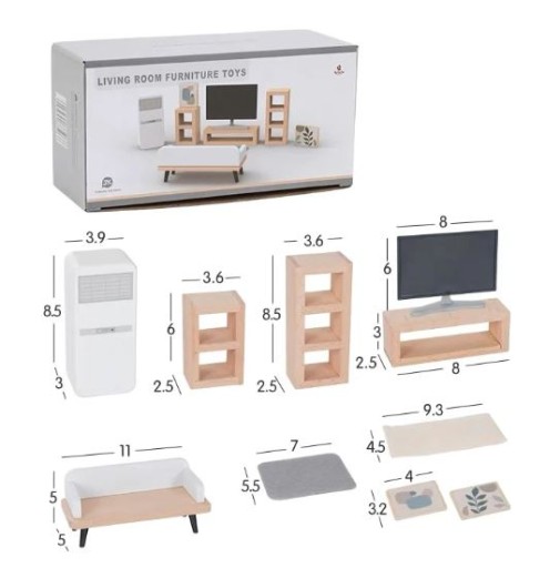 ✅Dzięki drewnianemu zestawowi mebelków, wnętrze salonu w domku dla lalek Twojego dziecka stanie się przytulne oraz nowoczesne.