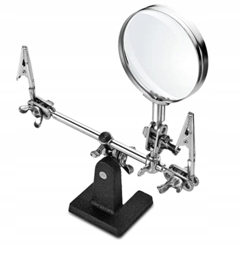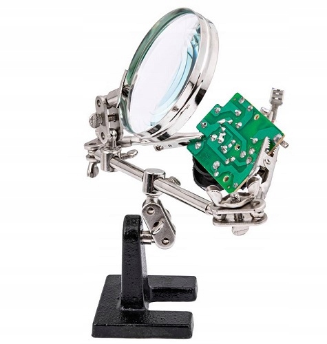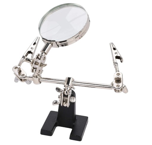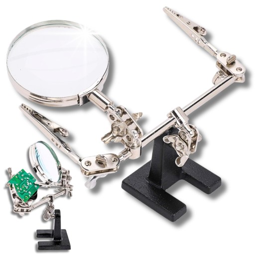 Lupa z dodatkowymi uchwytami ułatwia prace wymagające precyzji Niezastąpione narzędzie podczas lutowania oraz przy pracy z płytkami PCB.