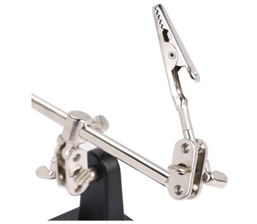 - Trzecia ręka posiada solidną żeliwną podstawę, która zapewnia dużą stabilność pracy.